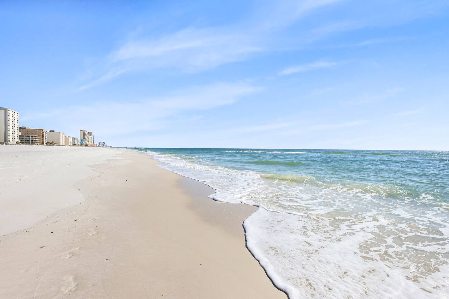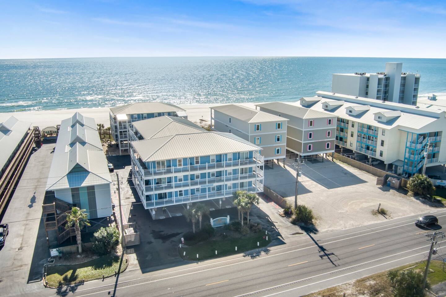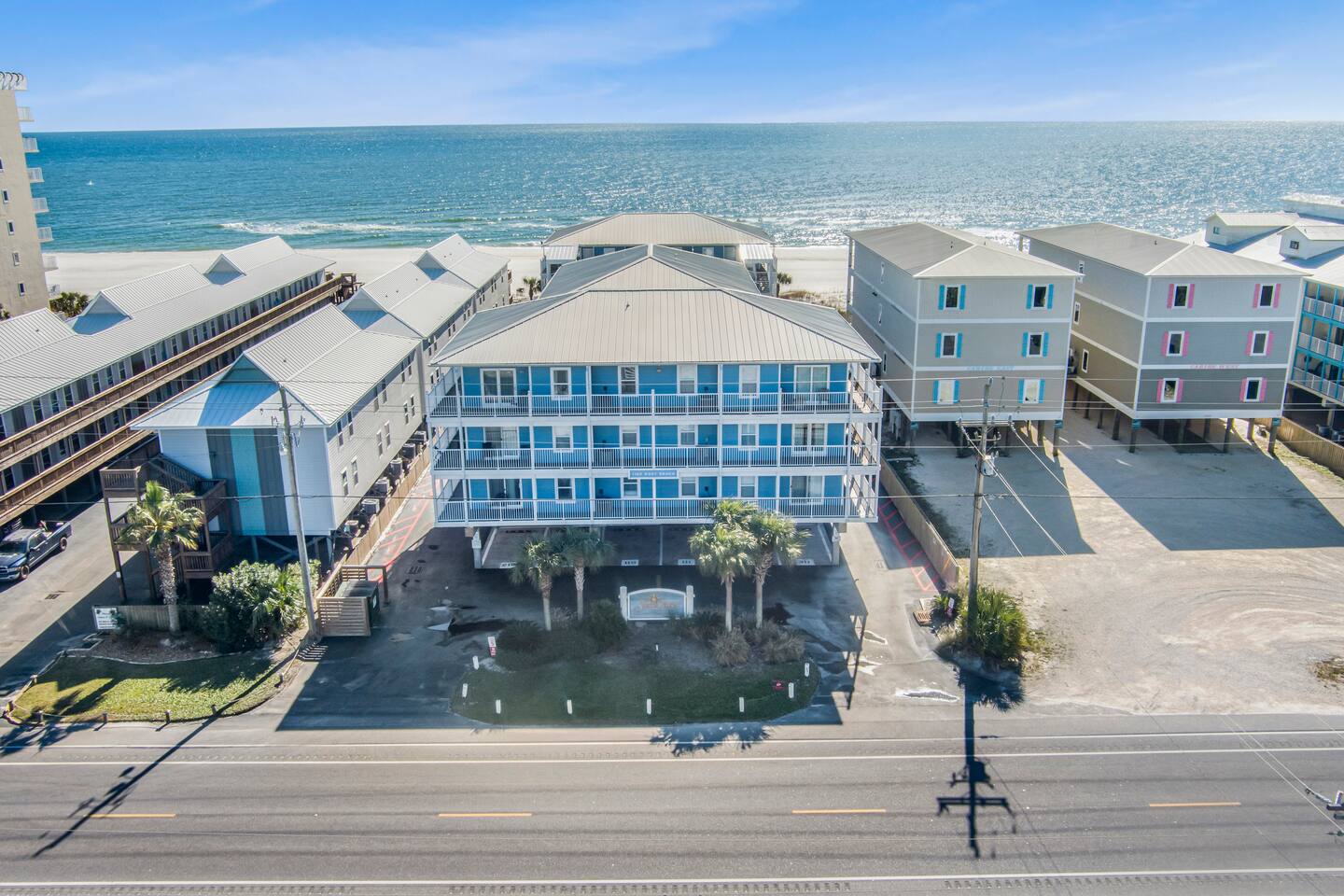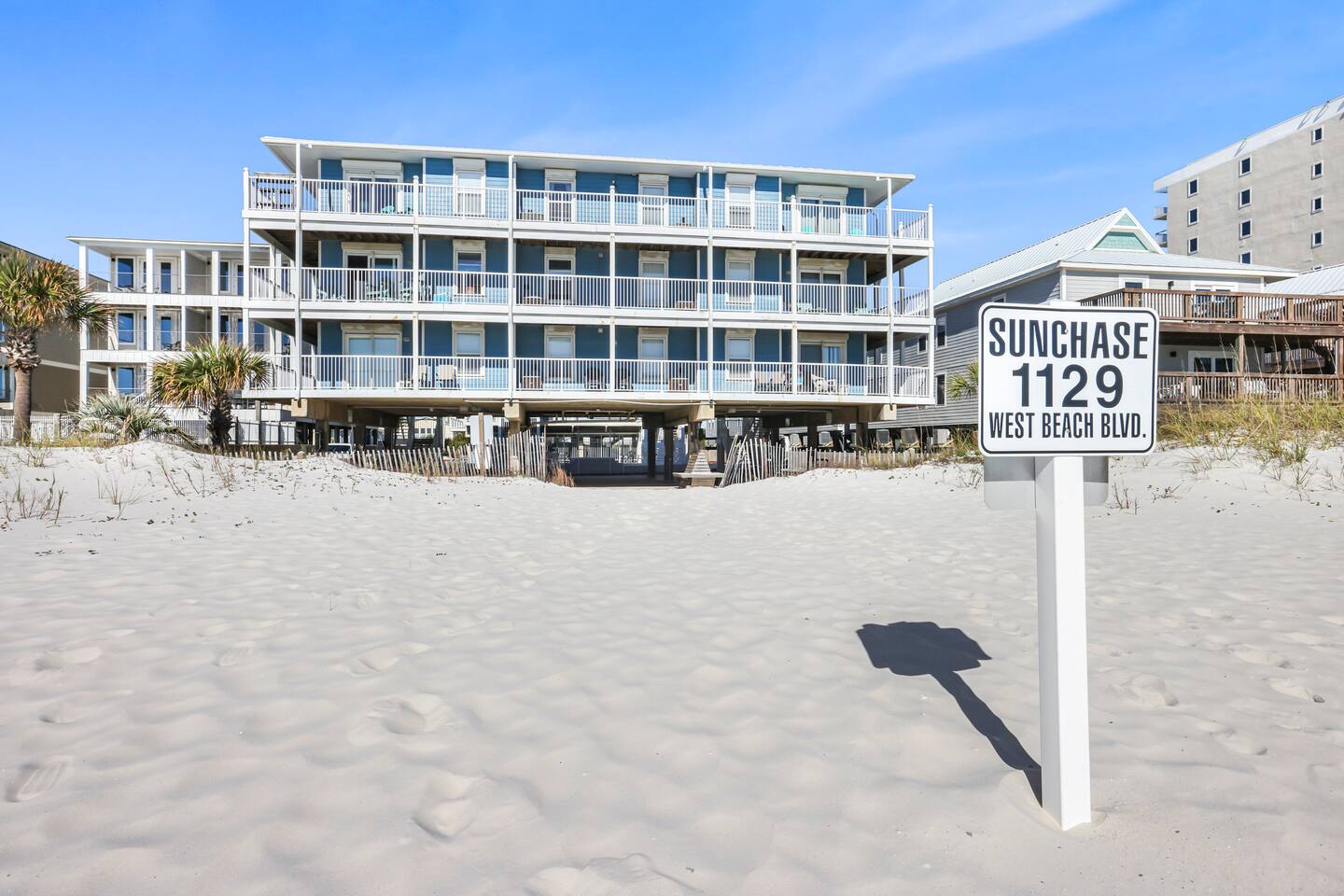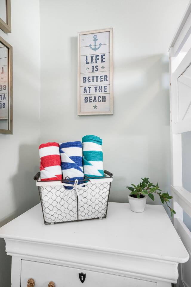 Welcome to the newly updated beachfront getaway on West Beach in Gulf Shores. This 2 bedroom condo comfortably sleeps up to 6 guests and offers beautiful Gulf views with direct beach access just steps away. Step out onto the balcony to listen to the waves or relax inside with smart TVs and inviting spaces designed for your comfort. Enjoy easy access to the community pool just a short walk from your door. Everything you need for a memorable beach vacation is right here. 🛋️ Living Area - Plush sofa and two accent chairs - 55” Smart TV (bring your own streaming logins) 🍽️ Dining & Kitchen - Table for 4 + 3 bar stools - Full kitchen with stainless steel appliances - Keurig, drip coffee maker, hot water kettle, toaster, blender - Complimentary starter set of K-Cups and tea bags 🛏️ Sleeping Arrangements - Bedroom 1: King bed + Smart TV - Bedroom 2: Twin/Full bunk bed + Twin trundle + Smart TV - Living Room: Queen pullout sofa - Linens, pillows, and extra blankets provided 🧸 For Children - Plastic dishes, cups, and utensils - Small assortment of toys, games, and sand toys 🏖️ Beach Access & Amenities - Direct beach access just down the stairs - 2 beach chairs, umbrella, beach towels, and toys included 🏊 Pool & Hot Tub - Small community pool (heated Oct-Apr, weather permitting) - Hot tub available year round - No lifeguard on duty 🔥 Grill Area - Shared charcoal grill near pool/beach access - Charcoal and supplies NOT provided 🚗 Parking - One assigned parking space for one vehicle - Visitor spots (3) will be unavailable after Labor Day 2025 due to construction 🚧 Complex Construction – Starting After 9/1/2025 The southern building of the complex will undergo exterior maintenance. - Your unit is in the northern building (fully operational) - Your assigned space remains unaffected - Beach access, interior amenities, and balcony are all fully available - Occasional weekday noise may be heard from southern building work 📋 Important Notes - No elevator at the complex – Unit is on the 3rd floor. Guests must be able to walk up three flights of stairs. - 24-Hour Cleaning Guarantee: Let us know within 24 hours if anything isn’t perfect and we'll make it right. - Must be 21 to book - Travel insurance recommended for bookings March–October. Refunds are not provided for inclement weather, beach closures, or marine life. - We provide a starter supply of incidentals. To start your stay, we provide one of each of the following: toilet paper roll per bathroom, paper towel roll, laundry pod, dishwasher pod, trash bag per can, dish soap.
